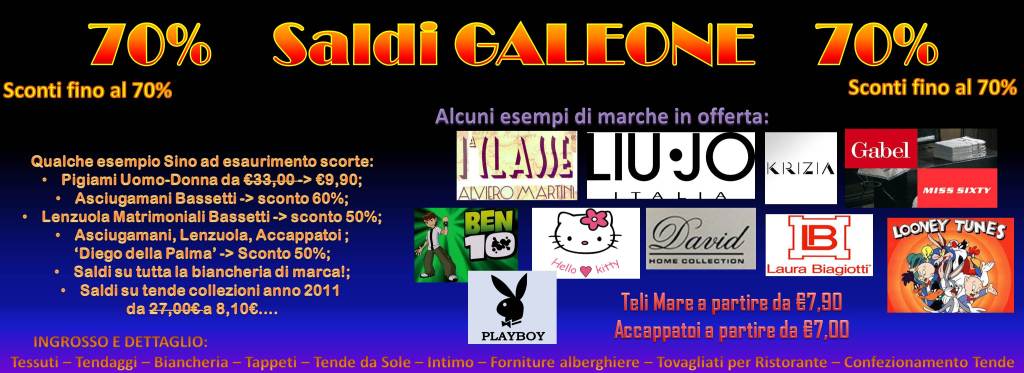 INGROSSO E DETTAGLIO Tessuti - Tendaggi - Biancheria - Tappeti - Tende da Sole - Intimo - Forniture alberghiere - Tovagliati per Ristorante - Confezionamento Tende Pulsano via Roma 16 Grottaglie via Garibaldi 97 ang Via Diaz Manduria - via Salvatore Gigli 76/A