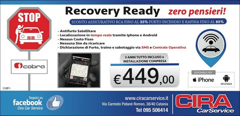 Dal 1982, Cira Car Service, si trova a Catania ,realtà attiva nel settore auto motive del mercato siciliano, offre professionale assistenza tecnica e realizza bellissimi servizi car wrapping per la personalizzazione degli autoveicoli. Specializzata nellinstallazione di antifurti ed impianti gpl, lofficina dispone di una professionale preparazione tecnica per linstallazione hardware e si occupa dellinstallazione di sensori di parcheggio, kit vivavoce ed antifurti meccanici e satellitari per autoveicoli. Il personale, esperto in impianti di videosorveglianza, effettua il montaggio di, inoltre offrendo un completo servizio a domicilio installa telecamere, antifurti per la casa ed impianti sonori per abitazioni ed uffici. Cira Car Service, installa pellicole oscuranti per vetri auto e illuminazioni a led e, offrendo servizi professionali e di qualità, realizza revisioni di sterzi eps elettrici ed effettua riparazioni di fanali a led. Siamo presenti sul sito www.ciracarservice.it